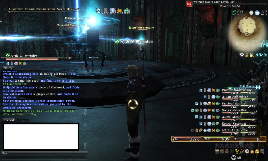 well i'll just say it rather then post it.... have general at bottom left corner battle on top both sized to almost half screen target bottom center my HP/MP/TP bar on top of that and action bar on top of that. xp bar bottom right corner PT info on top of it radar top right with connection status micro menu touching the top left part of the radar status/buff info bar top center and leve top left. sorry cant get the pic :(